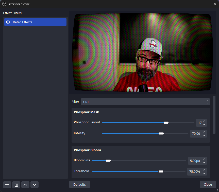 OBS 复古特效插件 是一款 OBS 插件,它提供多种滤镜来模拟复古硬件(例如 CRT 显示器、NTSC 信号等),使您的 OBS 源具有真实的复古外观/感觉。Retro Effects 提供以下滤镜。