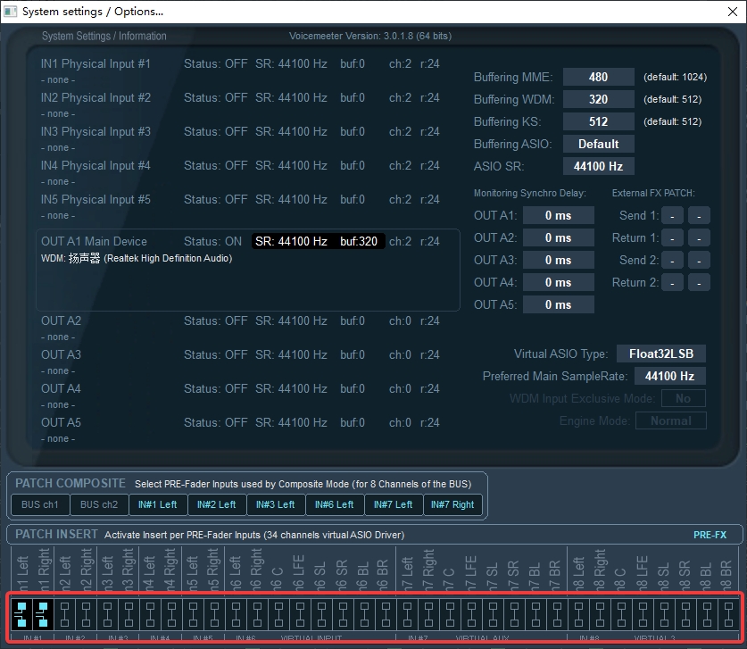 如果想直播,对很多声音进行处理,那么就需要用到 [Insert Virtual],在用这个音频设备之前,先对 Voicemeeter 进行一些设置。