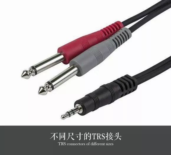 其实,日常生活中我们见得最多的就是TRS接口,它的接头外观是圆柱体形状,通常有三种尺寸:1/4"(6.3mm)、1/8"(3.5mm)、3/32"(2.5mm)。