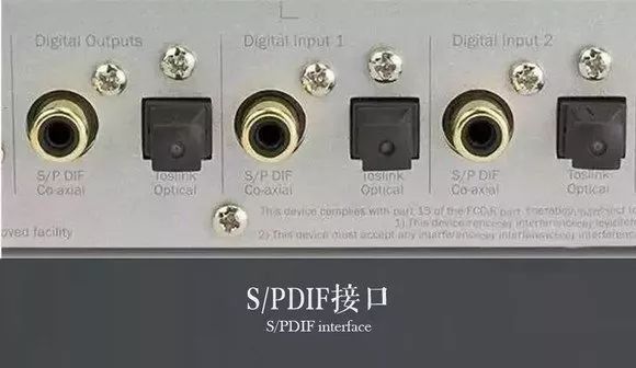 S/PDIF接口一般有三种:RCA同轴接口、BNC同轴接口和TOSLINK光纤接口。在国际标准中,S/PDIF需要BNC接口75欧姆电缆传输,然而很多厂商由于各种原因,频频使用RCA接口甚至使用3.5mm的小型立体声接口进行S/PDIF传输,久而久之,RCA和3.5mm接口就成为了一个“民间标准”。